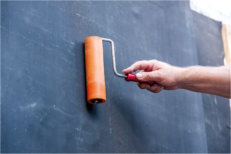 Bevor im nächsten Schritt ein zugelassener Primer auf den Untergrund aufgebracht wird, muss die Untergrundbeschaffenheit geprüft werden. Bauwerksflächen müssen frostfrei, fest, eben, frei von Nestern und klaffenden Rissen sein. Als Untergründe sind Betonflächen, Ziegel, Porenbeton und Kalksandstein möglich. Offene Stoßfugen und Vertiefungen von bis zu 5 mm können verbleiben. In Baugruben empfehlen wir die Verwendung unseres rollbaren Primers, um die Belastung mit Schadstoffen zu minimieren.